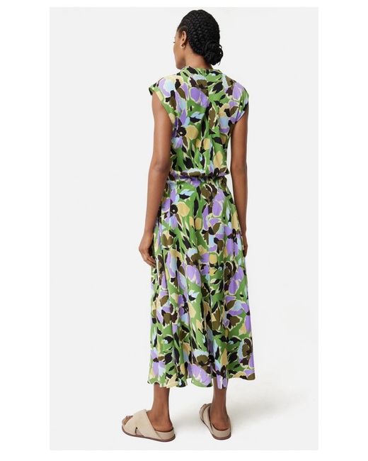 Our soft viscose, neatly fitting maxi dress printed with a semantic Spring print. An elasticated smocked body gives a lovely comfort to this dress. Cap sleeves, full skirt with shaped hemline and feminine cowl neckline. Invisible zip fastening. Wear back with an oversized blazer and chunky boots. FIT AND FEATURES Soft viscose Side pockets Graphic Pansy print Elasticated waist Maxi length