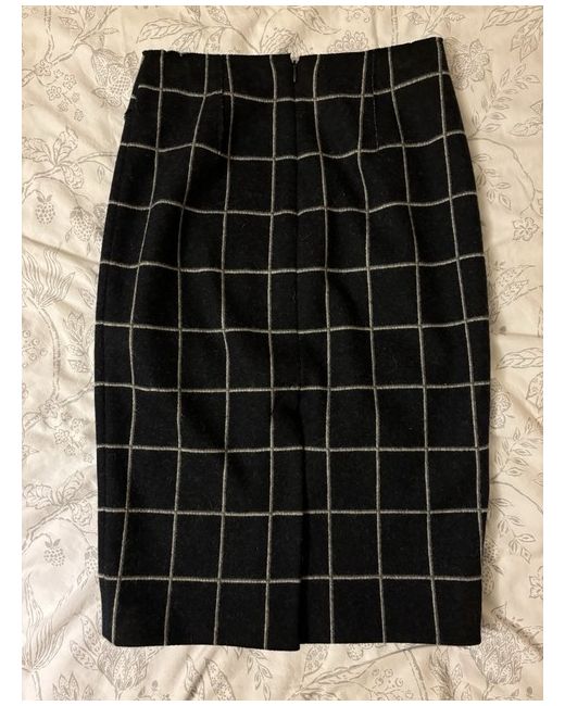 Check Borders Wool Skirt Navy and 10