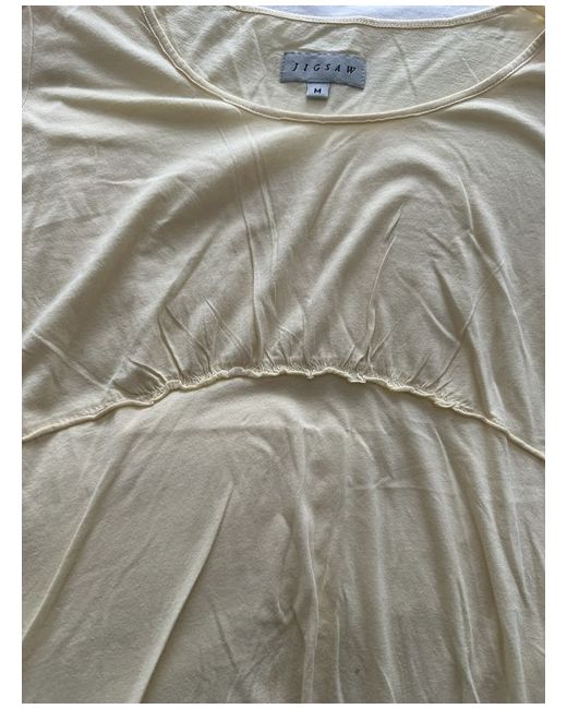 This Jigsaw yellow top in size M is perfect for the modern woman. Made from high-quality cotton, this slim-fit t-shirt features a round neck and cap sleeves for a comfortable and stylish look. Its solid pattern and bright yellow colour make it a great addition to any wardrobe. With its basic style, this top is versatile and can be worn for a variety of occasions. Whether you're dressing it up with a blazer and skirt or keeping it casual with jeans, this Jigsaw top is sure to become a staple in your wardrobe.