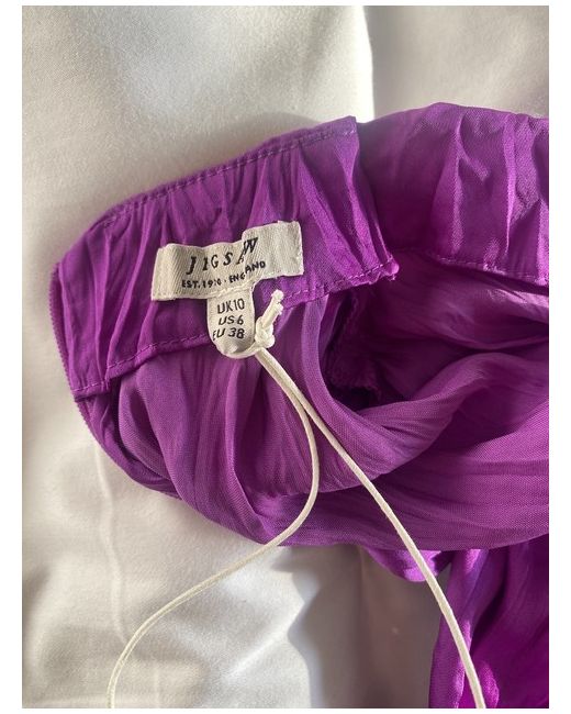 Elevate your wardrobe with this stylish Jigsaw Crinkle Purple Blouse. Made of high-quality polyester, this blouse offers both comfort and durability. The short sleeves and basic style make it perfect for any occasion, while the beautiful purple colour adds a pop of personality. This blouse is designed for women with a regular size type and is available in size 10. It is a must-have item for any fashion-forward individual looking to add a touch of sophistication to their wardrobe. Don't miss out on this opportunity to own a Jigsaw brand blouse that is sure to turn heads.