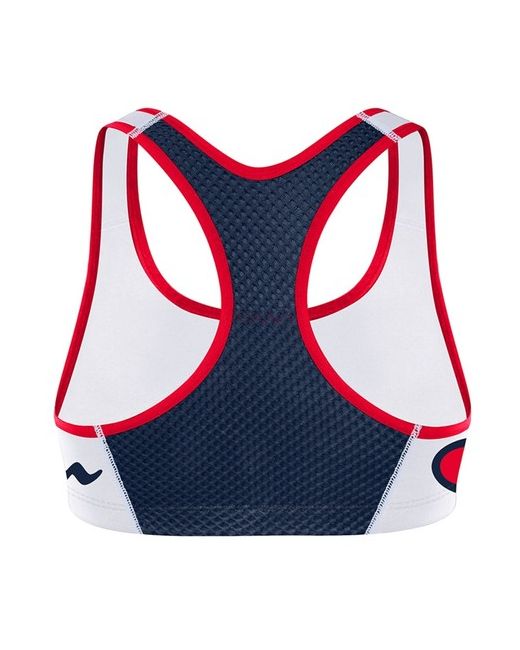 The Champion White Crop Top bra has been designed with a stylish microfibre panel and fishnet racer-back to achieve a crop top look. Style: Sports Bra. Racerback for full range of motion. Back Size Conversion: S = 32, M = 34, L = 36, XL = 38.