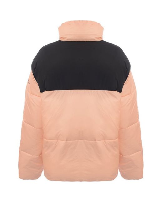 Main: 100% Polyester. The Champion puffer jacket in pink with a black block design is a stylish and functional piece of outerwear. It features both a zip and button fastener for double the protection against the chill. This jacket combines fashion with practicality, providing a cozy layer that's perfect for brisk days. Whether you're out for a walk or running errands, this jacket is sure to keep you warm and looking great.