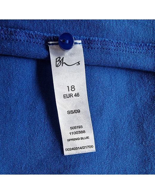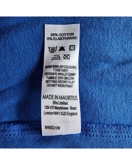This beautiful blue blouse from BHS is perfect for any casual or travel occasion. The top is made with a comfortable blend of cotton and elastane, making it machine washable for easy care. It features a round neckline and short, casual sleeves with a pleated button accent. The blouse comes in a size 18 and has a regular fit. It is solid blue in colour and has a pullover closure. This blouse is ideal for the autumn, summer, or spring seasons. The garment is not vintage and was made in Mauritius.