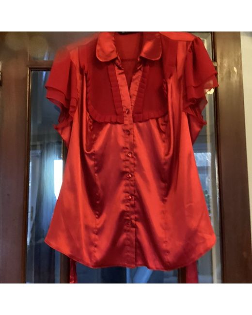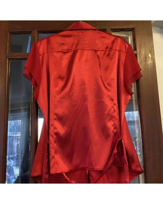 This new BHS blouse in red is a size 22, designed for women. Made from a blend of polyester and viscose, it features short sleeves and is suitable for regular sizing. The blouse is a stylish addition to any wardrobe, perfect for pairing with trousers or skirts for a smart and sophisticated look.