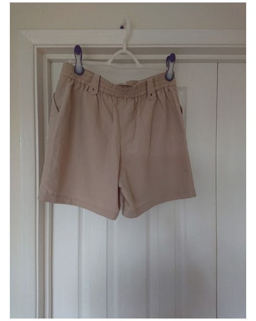 BHS LADIES STONE COLOURED SHORTS. SIZE 12. Zip and popper fastening to front. Part elasticated at back waistband. X2 usable front pockets.