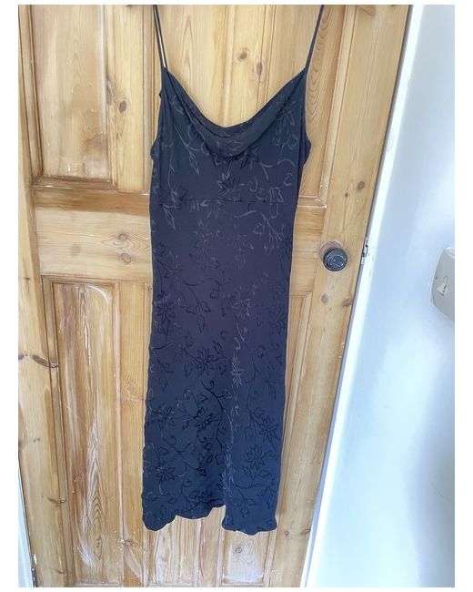 Women's Floral vintage 90s black pattern design cowl neck strappy midi dress 14