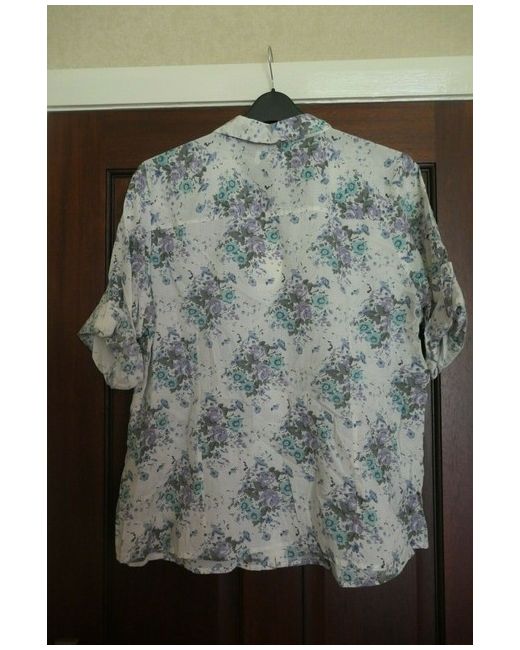 This collared ivory blouse with mauve and blue flowers, was bought but never worn.