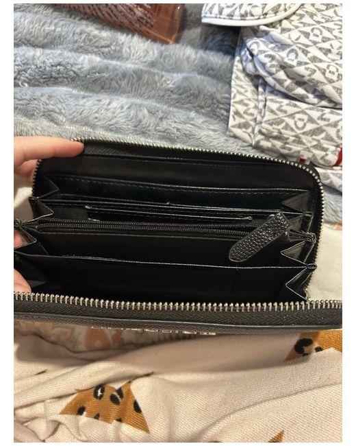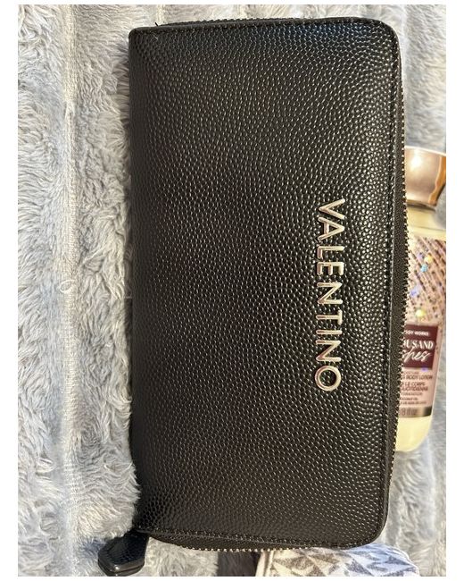 Crafted from premium leather, this elegant Valentino purse is a statement of sophistication for any woman. Its luxurious black hue is versatile, seamlessly transitioning from day to night. The purse is thoughtfully designed, featuring multiple credit card slots to keep your essentials organised. Accentuated with a sleek zip detail, this accessory not only offers functionality but also a touch of modern flair. Whether it's a treat for yourself or a gift for someone special, this Valentino purse combines luxury with practicality, making it a timeless addition to any collection.