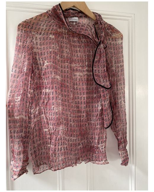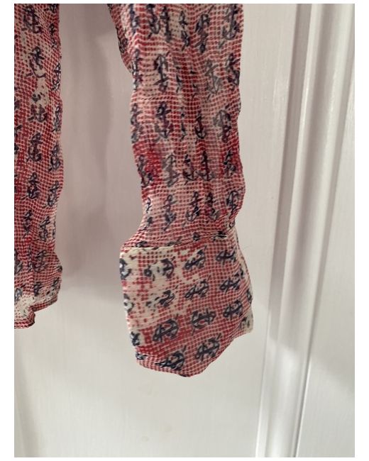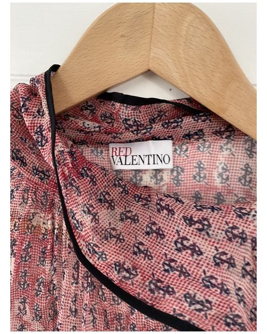 Red Valentino sheer blouse - S. Sheer silk Red with blue anchor details Long sleeve with button cuffs Dark blue piping Adjustable collar with tie detail