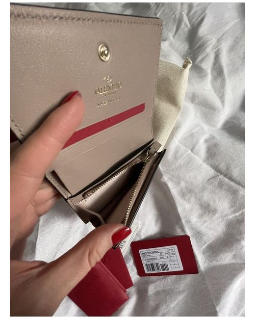 VALENTINO GARAVANI Rockstud Small Wallet Poudre Bought through Fashionette website This item has sat locked away in a smoke free environment and away from sunlight. Never used I’ve bought many designer items over the years and I had hoped to use them but I never wanted to ruin them. The result is holding on to an item I never use So I hope to sell this to someone who will make good use of it This item is no longer for sale via Fashionette - see their website Proof of purchase is available upon request No returns will be accepted as I’ve been messed around with this in the past - I hope you understand