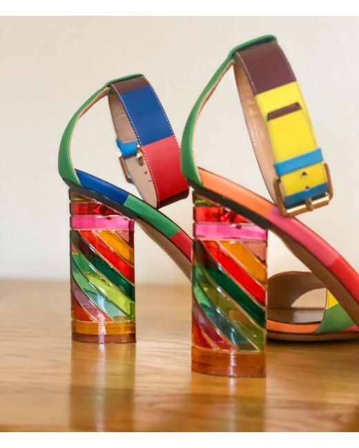 Multi colour plexi heels. Block heel: Plexi. The multicoloured design is perfect for any occasion, from weddings to parties. - Runway piece. UK 3 / EU 36. Heel height. Collectors piece .