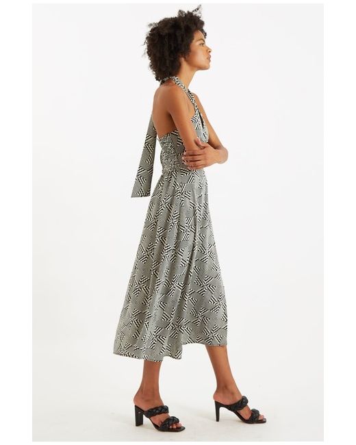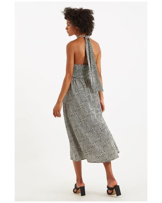 Geri 60s Patchwork Halter neck Midi Dress Introducing Geri our dramatic halter tie midi dress which will dazzle in any occasion. Crafted in a premium polyester fabric with a unique 60's inspired graphic print.