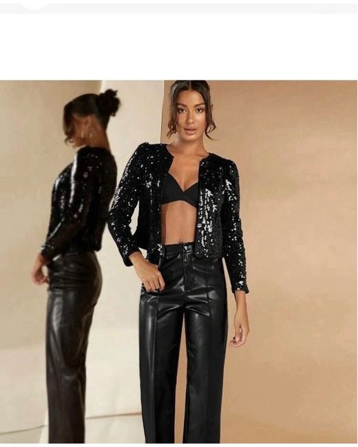 Composition: 100% Polyester. Style: Party. Care Instructions: Hand wash,do not dry clean. Fit Type: Regular Fit. Colour: Black. Sleeve Length: Long Sleeve. Length: Crop. Pockets: No.