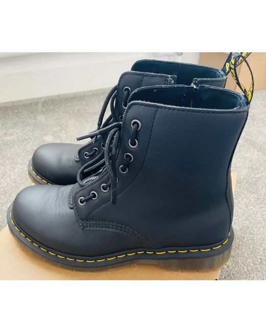 The 1460 Pascal is an 8-eye silhouette based on the original Dr. Martens boot. The boot's iconic DNA looks like this: 8-eyes, an air-cushioned sole with grooved edges, yellow welt stitching and a heel-loop.