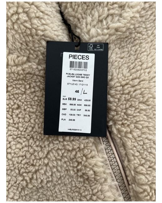 New Pieces Curve zip front borg jacket in beige L. Rpr 55