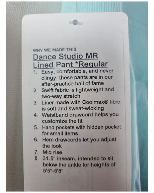 Dance Studio Mid-Rise Lined Pant Regular Ideal Mint US 6 UK 10 BNWT