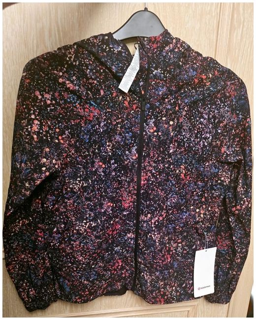 The windbreaker style jacket is made from lightweight polyester material that is water-resistant, making it perfect for various outdoor activities like cycling, running, and yoga. It is suitable for a range of activities, including gym and training, walking, cross-training, dance, driving, and Pilates.