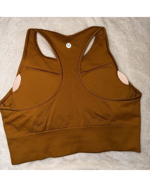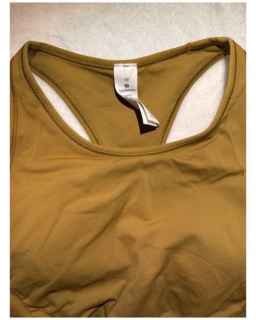 This is a women's Lululemon Ebb to Train Bra in brown, size 10. It is an activewear tank top designed for workouts and other active occasions. The bra is brand new with tags, making it a stylish and functional addition to any activewear collection. Perfect for fitness enthusiasts looking for high-quality and fashionable workout attire.