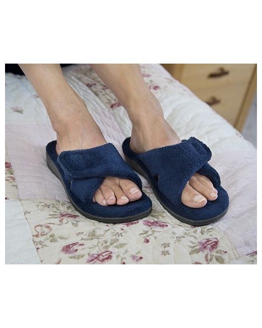 Vionic Indulge Relax is an orthotic slipper with arch support and cushioning. Colour is Navy Blue. UK 7 standard fit.
