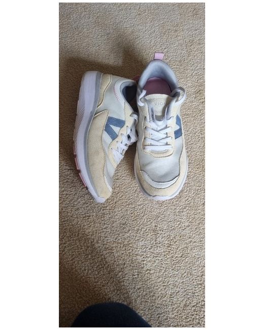 Vionic Ayre Style Trainers Size 4.5 White trainer Grey and beige suede Blue fabric V Pink sole and insole Ayre style shoe Worn once