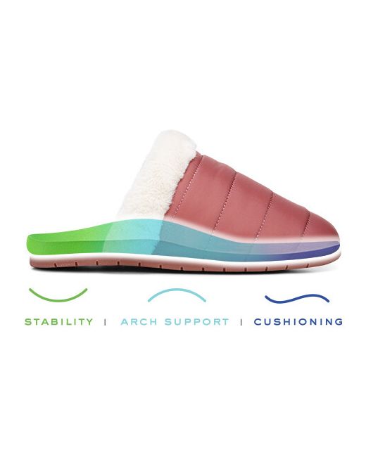 Built in Orthotic footbed provides both support and comfort to your arches. Footbed: Fixed, Orthotic. On trend mule slipper with a soft nylon puffer upper and a cozy shealing lining. Heel Height: Flat.