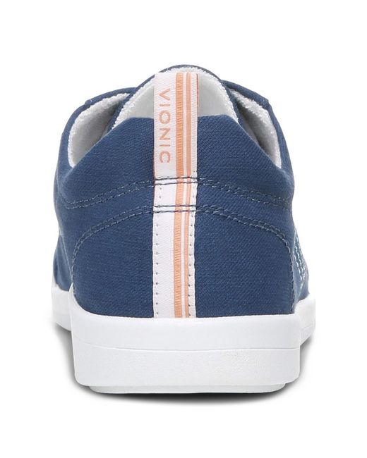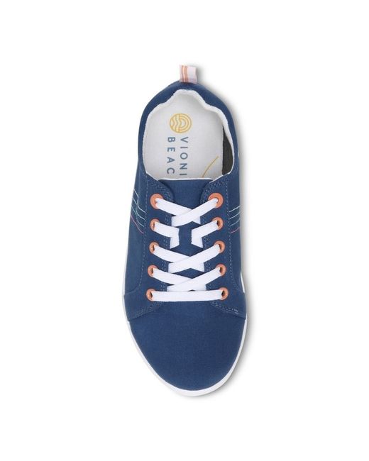 Step into comfort with these navy Vionic Stinson canvas trainers. Designed for women, these lace-up sneakers feature arch support and a stylish sneaker design that's perfect for any casual occasion. The brand is trusted by healthcare professionals worldwide and is known for their high-quality footwear. These trainers are perfect for anyone looking for a comfortable and stylish shoe. The navy colour adds a pop of colour to any outfit, while the arch support ensures comfort all day long. Whether you're running errands or going for a walk, these Vionic Stinson trainers are the perfect addition to your shoe collection.