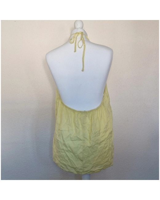 This sleeveless, open back top top features a flattering halter neckline with a tie closure, perfect for any occasion. The bright yellow colour adds a pop of fun and vibrancy to any outfit, making it a must-have for the fashion-forward woman.