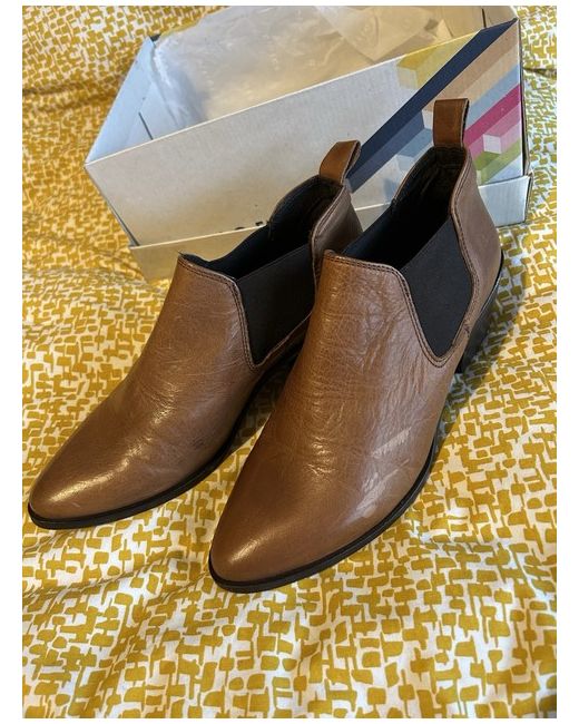 Tan leather boots, new, never worn. Block 2 inch heel and elasticated sides, distressed leather effect with leather tab on the back. Easy pull on style, fits true to size.