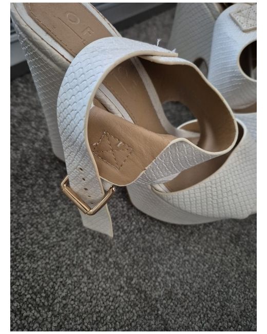White with gold buckle heeled platform shoes