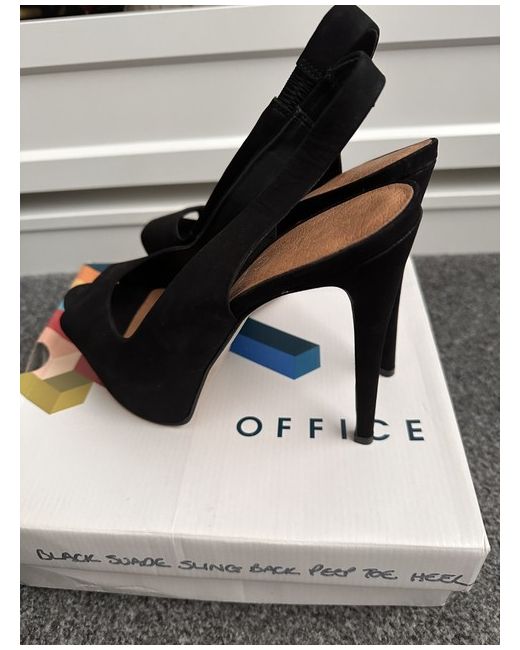 Elevate your style with these sleek and sophisticated black heels from OFFICE. Perfect for any occasion, these stiletto slingbacks feature a peep toe and are designed for women in UK shoe size 7 and AU shoe size 40. The heels come in a stunning black colour and are sure to complement any outfit. Whether you're dressing up for a night out or need a stylish pair of shoes for the office, these black heels are an excellent choice. Their timeless design and high-quality construction make them a must-have addition to any shoe collection. Don't miss out on the chance to own these stunning new OFFICE heels.