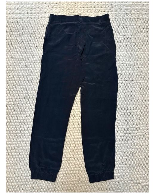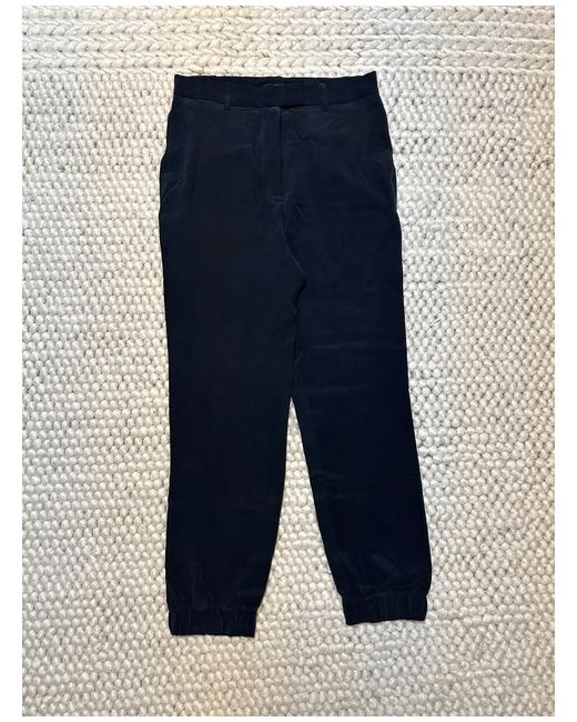 COS 100% silk flat front trouser. Midnight colour, high rise. Zip fastening with button and hook and eye fastening. Two invisible side pockets, one back patch pocket, belt loops, sewn detail down the back of the legs. Elasticated leg hem opening. Beautiful garment, a bit hard to take photos due to the silky nature of it. Soft and luxurious. Women’s size 34 New with tags Originally £79 Waist @ 14.25 inches Rise @ 13 inches Waist to hem @ 36.5 inches Elasticated leg opening 5.25 inches Please see our other items. Happy to combine postage.