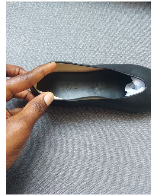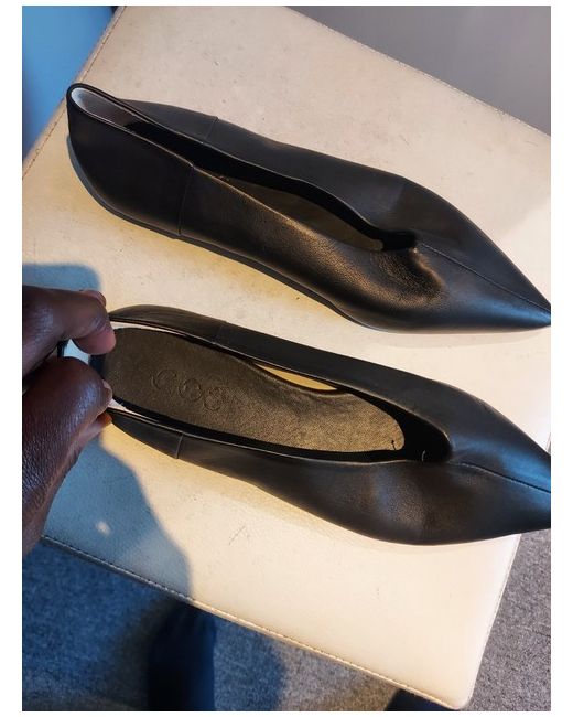 Step into effortless style with these sleek COS black flat shoes, a versatile addition to any wardrobe. Meticulously crafted in Portugal, these shoes feature a supple leather upper with a classic pointed toe, ideal for a range of casual occasions.With their timeless design, these flats are suitable for various seasons, including autumn, spring, and summer. The shoes are a UK size 3.5, tailored to provide comfort without compromising on elegance. Their non-customised, understated charm makes them a staple for both day-to-day wear and special events.