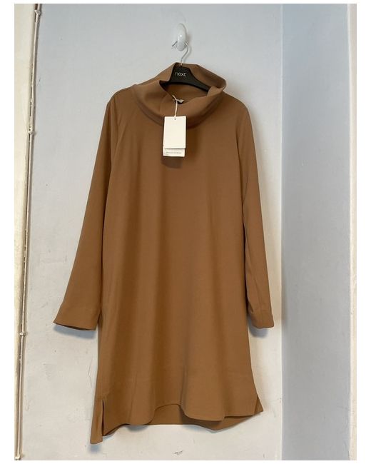 Cos Beige Mid Length High Neck Dress Size UK 14 EUR 40. Cut with extra room for movement through the chest and sleeves, this lightweight crepe dress features hemline side slits for ease of movement. It is finished with a high cowl neckline. 100% Recycled Polyester