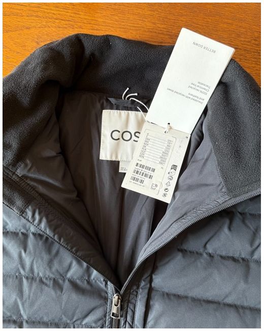 COS new black jacket, fits like a UK size 12/14. Down feathers, really warm. Lined with a soft fabric.