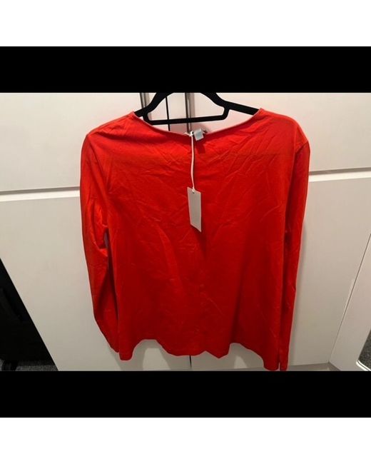 This red blouse from COS is a stylish addition to any wardrobe. Made in size Medium, it features a round neck and long sleeves for a classic look. The front pockets add a practical touch, while the basic style ensures versatility in pairing with various outfits. Ideal for women looking for a comfortable yet chic top, this piece is perfect for casual or smart-casual occasions.