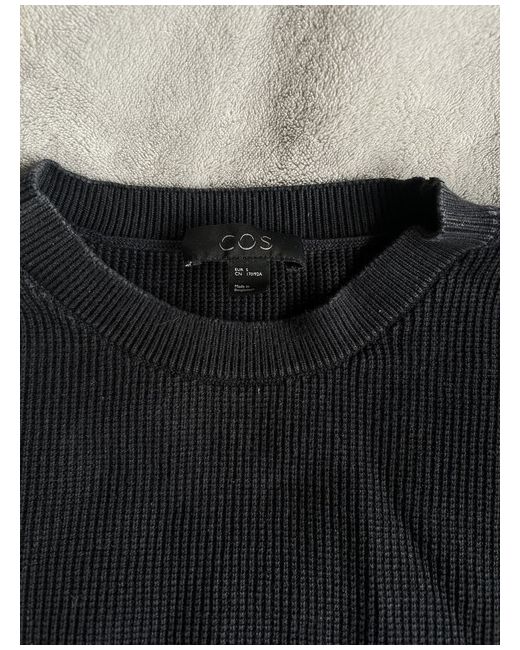 cos black. very very dark navy jumper. super thick knit material. heavy jumper.