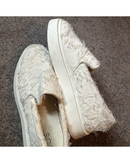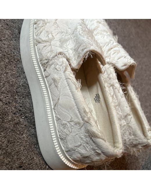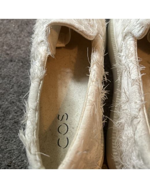 These trendy pump are from Cos could be unisex size 41. They have a feathering design which is patchy and they are slightly dusty which is why I have listed as defect. I’m sure they would clean up perfect.They have an inch platform and an elastic piece under the tongue. Retail price tag £59 please see photos