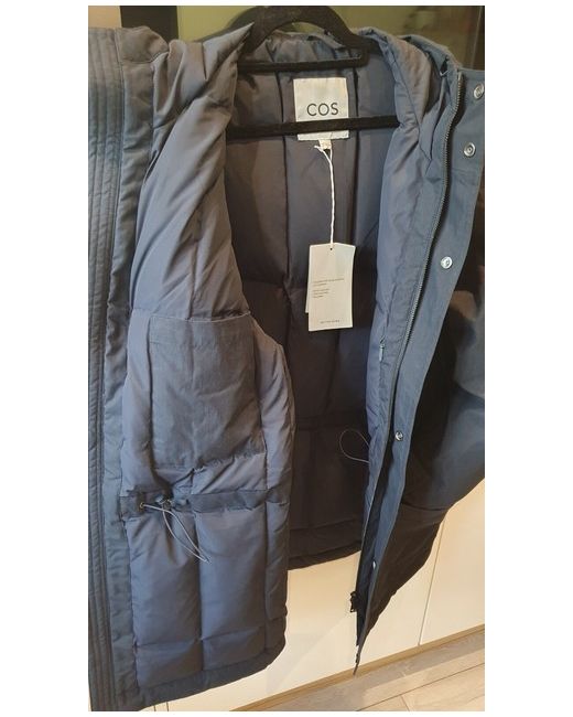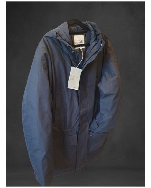 RRP £225 This navy COS parka is the perfect addition to your winter wardrobe. Made with a polyester outer shell and lined with cosy down, this mid-length jacket is both stylish and practical. The full zip and hood make it easy to wear, while the pockets provide ample storage space. The jacket is available in size L and is designed for women. The down insulation material ensures warmth and comfort, making it perfect for outdoor activities. With its stylish design and functional features, this COS parka is a must-have for any fashion-conscious woman looking to stay warm and cosy during the colder months.