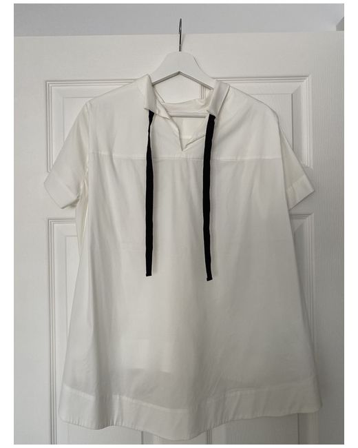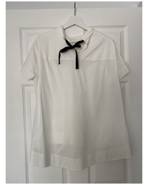 COS white blouse with mock neck collar and tie back ribbon collar.