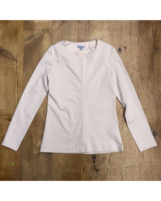 Top Small Long Sleeves Navy Lightweight Crinkly Fabric Slash Neck New 55