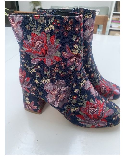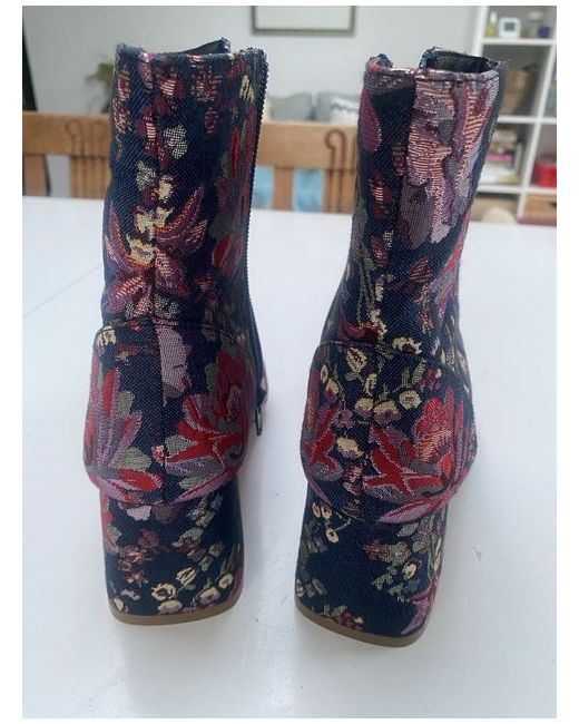 Step into style with these stunning Faith Boots with flower design. The vibrant multicoloured floral pattern is perfect for any formal occasion, from weddings to christenings. The boots feature a mid-height block heel, making them comfortable for all-day wear. Crafted from a blend of fabric and leather, these boots are both durable and stylish. The woven fabric type adds a touch of elegance, while the zip-up boot style ensures a secure and comfortable fit. With the Faith brand, you can be sure that these boots are of the highest quality. Add them to your collection today and step out in style! Only been worn inside hence slight discolouring on the sole!