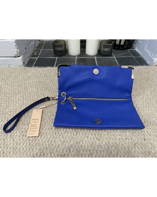 Elevate your evening ensemble with the Faith Clutch, a statement piece that combines functionality with a dash of elegance. The electric blue exterior is complemented by a sophisticated gold metal trim, ensuring you stand out in any setting. Its compact design is perfect for carrying your essentials without compromising on style.