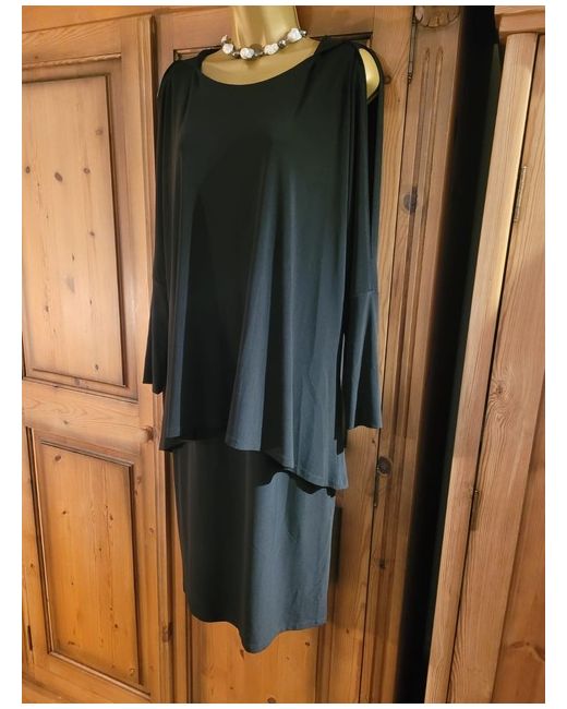 Joseph Ribkoff. Double layer black evening occasion dress. Bottom layer is a sleeveless black shift dress. Very smart on for an evening out. Attached top layer is a floaty loose fit style with slit sleeves and fitted cuffs.