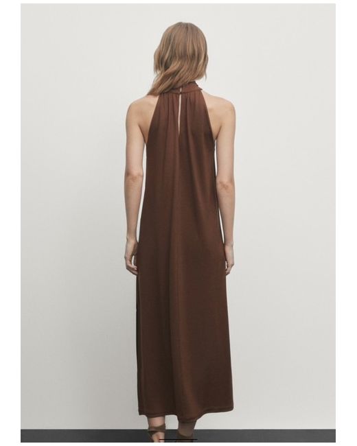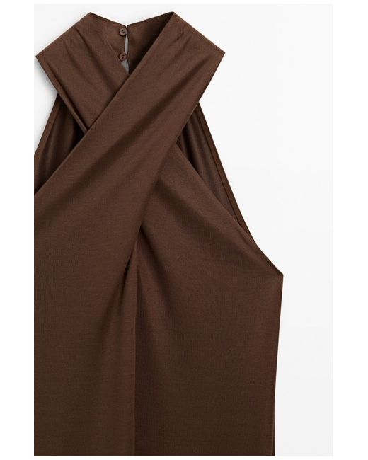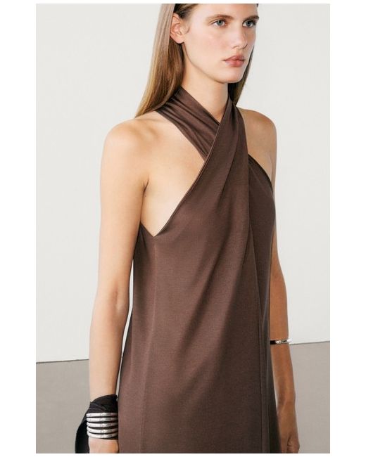 BNWT Massimo Dutti CrossOver Neck Halterneck Brown Midi Dress 12 Medium. Condition is New with tags. Dispatched with Royal Mail Tracked 48.