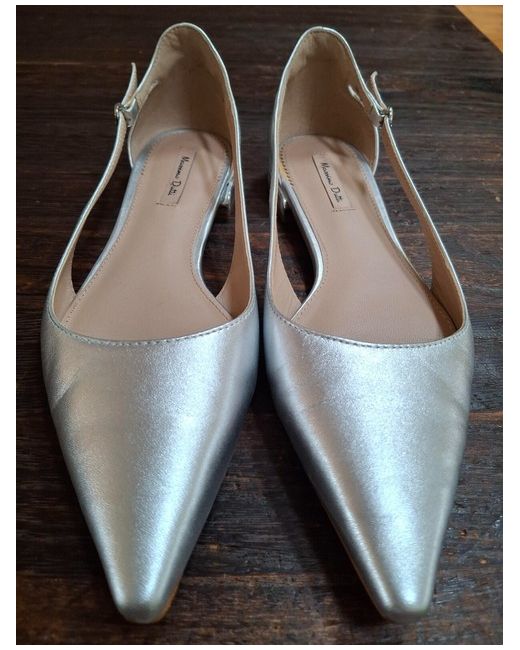 Experience everyday comfort with these elegant silver Massimo Dutti flats. Designed with a keen eye for style, these shoes feature a supple leather upper and a soft leather lining, ensuring your feet are cradled in luxury with every step. The versatile silver hue complements any outfit, making these flats a staple for your wardrobe. With a UK size 4.5 (EU size 37), these flats are tailored for women who value both fashion and comfort. The durable synthetic outsole provides lasting wear, while the timeless design promises to keep your feet looking chic. Whether it's for office work or a casual day out, these Massimo Dutti flats are the perfect choice.