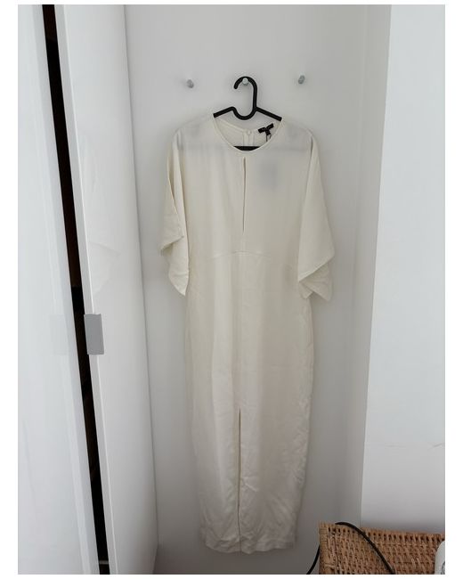 Tailored to flatter in a regular size S, the maxi-style dress exudes sophistication in an ivory hue, making it a versatile choice for any cocktail party or formal event.