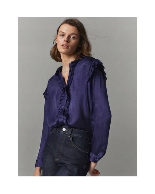 Blouse with satin finish. Collared, Long sleeves. Ruffle detail. Front button closure. Composition – 100% Viscose.