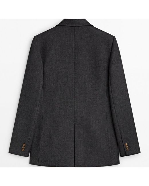 Double-Breasted Wool Blazer Dark Grey 40 UK L