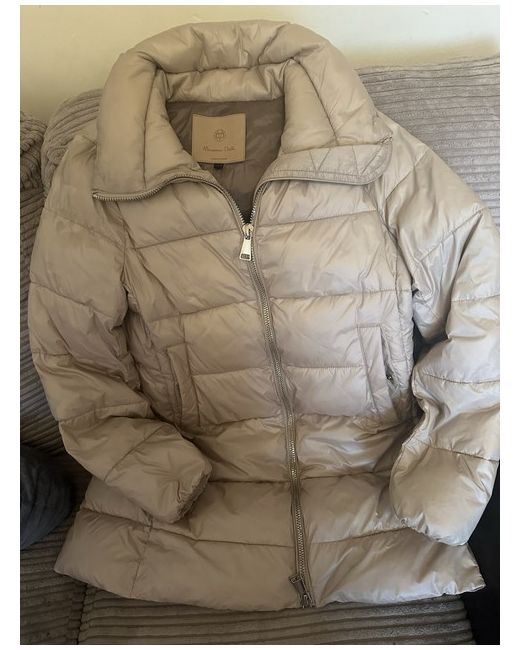 This Massimo Dutti women's coat is a new gold bomber jacket in size M. It has a regular fit and features a zip closure. The outer shell material is made of polyester, making it a stylish and durable addition to any wardrobe. Perfect for layering in cooler weather, this coat exudes a chic and fashionable look suitable for various occasions.