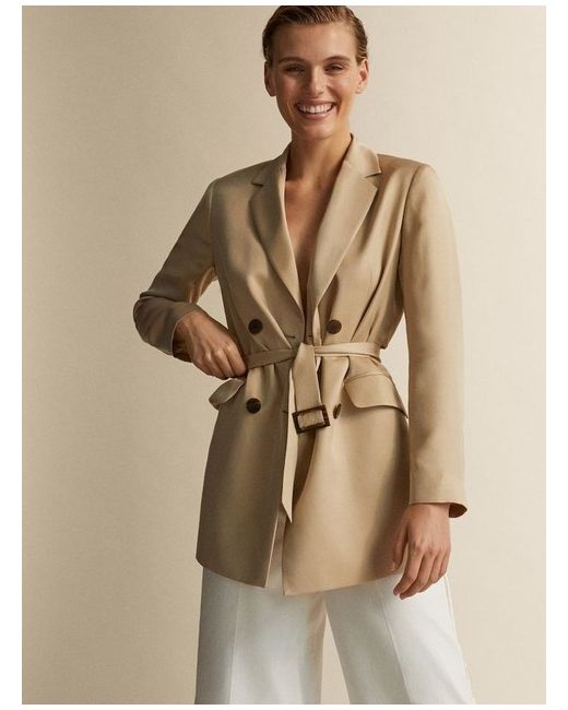 Beige BNWT Double-Breasted Cupro Blazer with Belt 12/40
